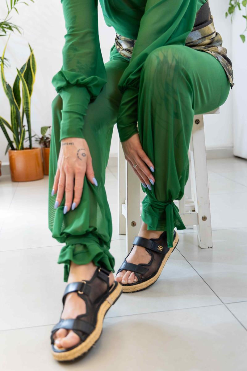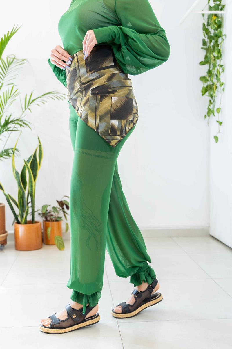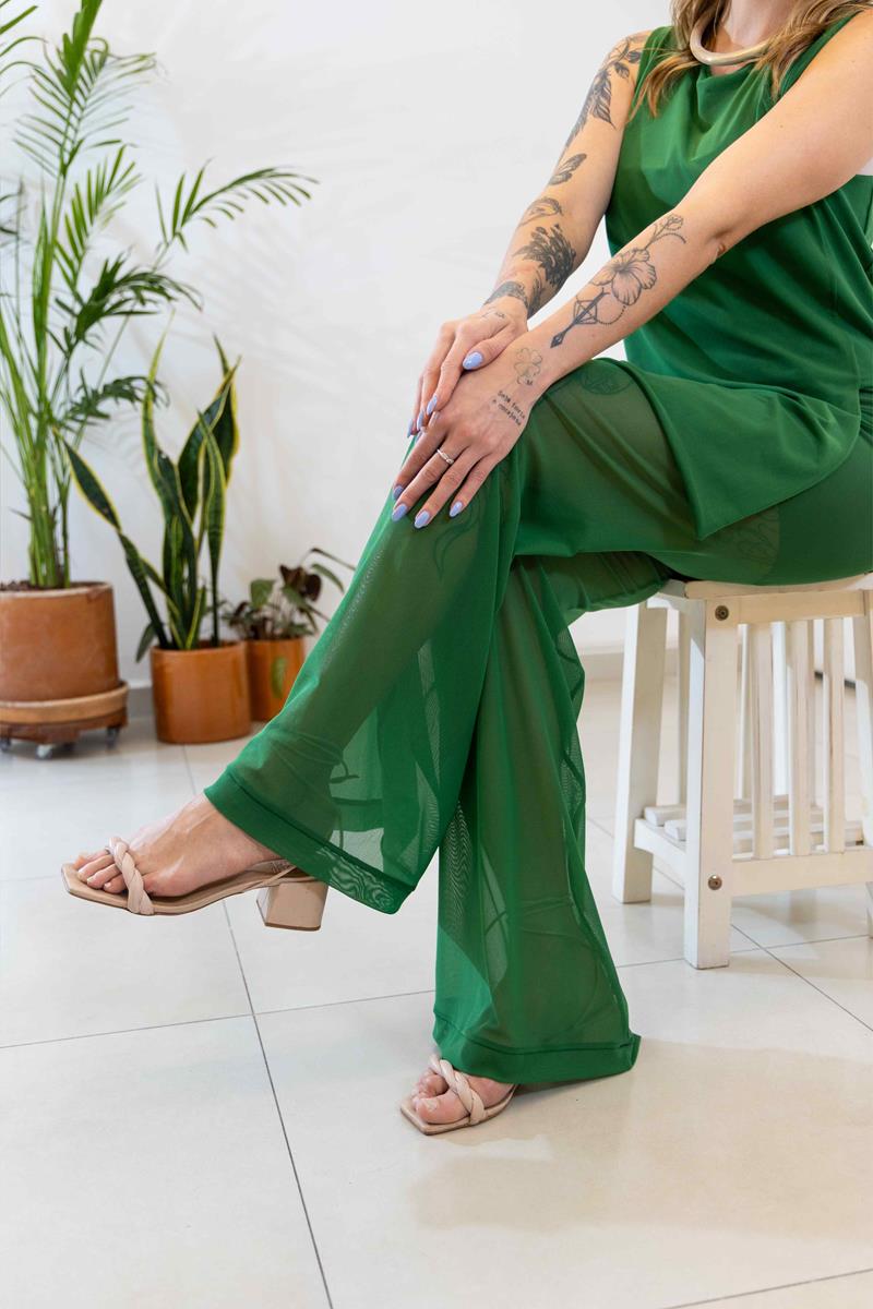 Calça em tule superversátil, que pode ser usada de duas maneiras: como pantalona ou, com o auxílio da cordinha que acompanha a peça, transformada em uma calça estilo Aladim. Possui forro em shortinho acoplado, na mesma cor do tule, garantindo conforto e praticidade.