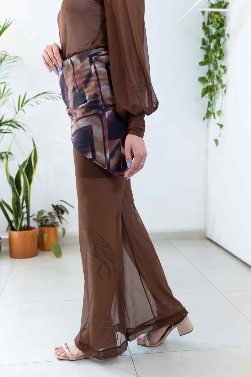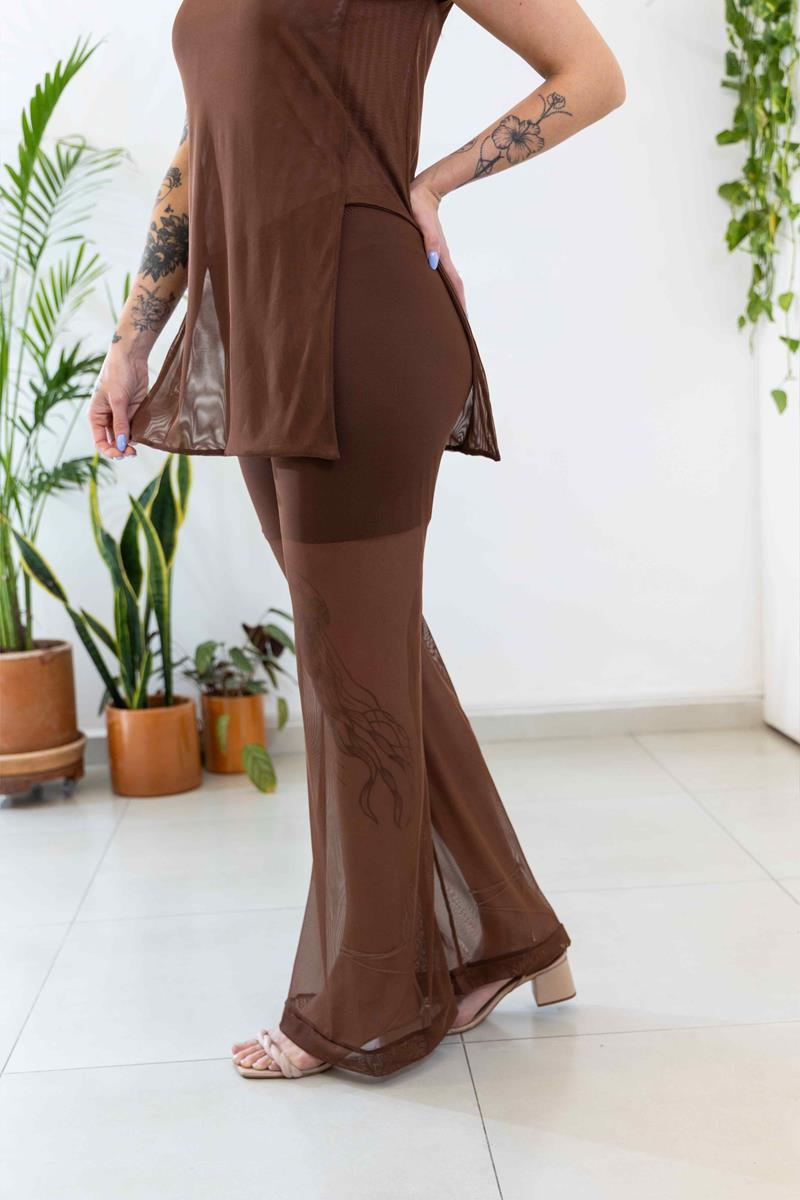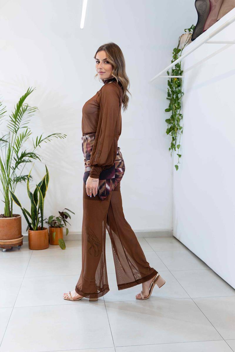 Calça em tule superversátil, que pode ser usada de duas maneiras: como pantalona ou, com o auxílio da cordinha que acompanha a peça, transformada em uma calça estilo Aladim. Possui forro em shortinho acoplado, na mesma cor do tule, garantindo conforto e praticidade.
