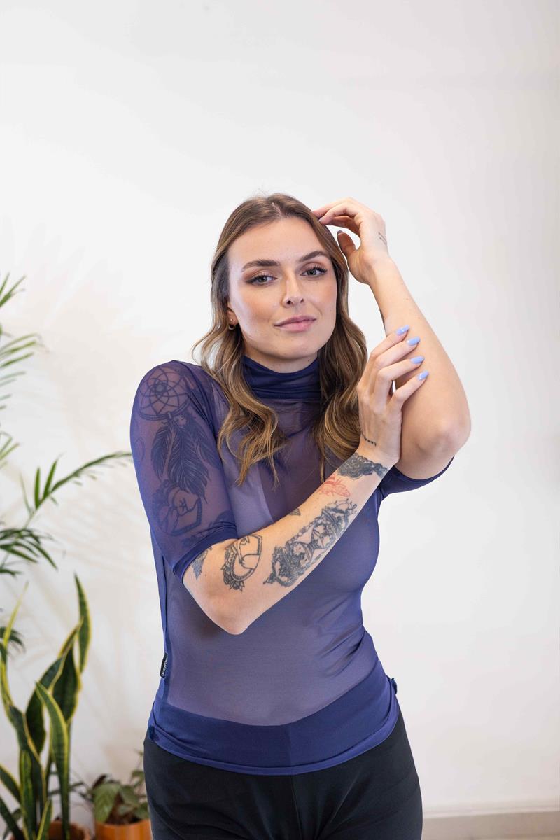 Confeccionada em tule de poliamida 90% e elastano 10%, a Blusa Tule Margot oferece leveza, maciez e caimento impecável.