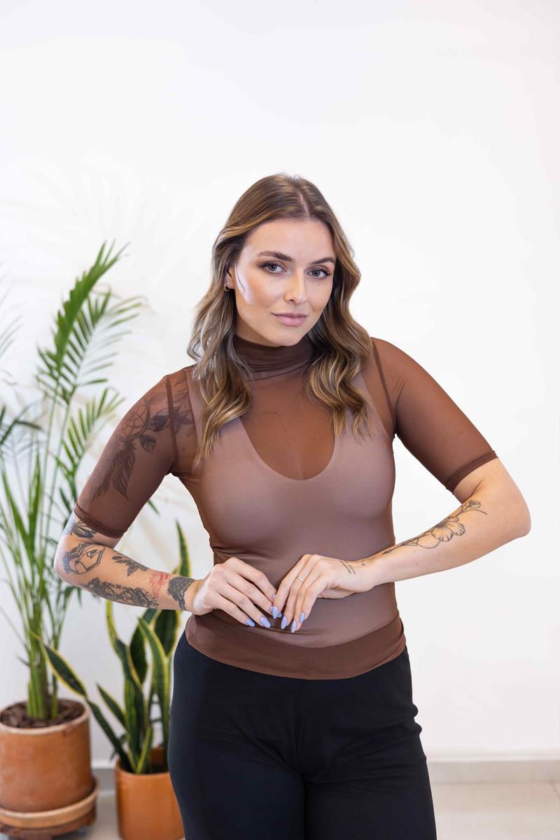 Confeccionada em tule de poliamida 90% e elastano 10%, a Blusa Tule Margot oferece leveza, maciez e caimento impecável.