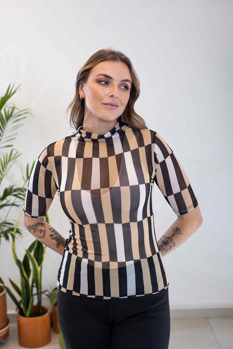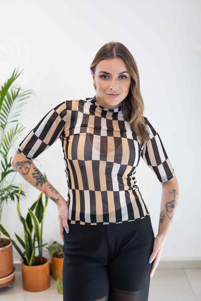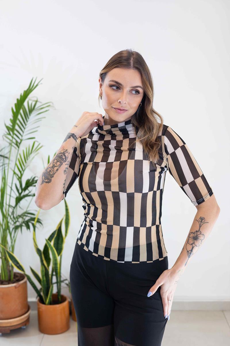 Confeccionada em tule de poliamida 90% e elastano 10%, a Blusa Tule Margot oferece leveza, maciez e caimento impecável.